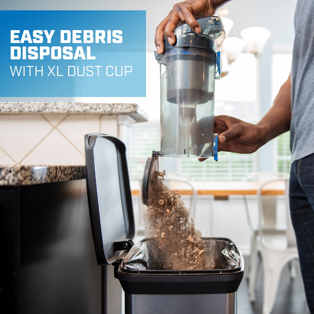 - XL dirt cup capacity for extended use. more time cleaning. less time emptying