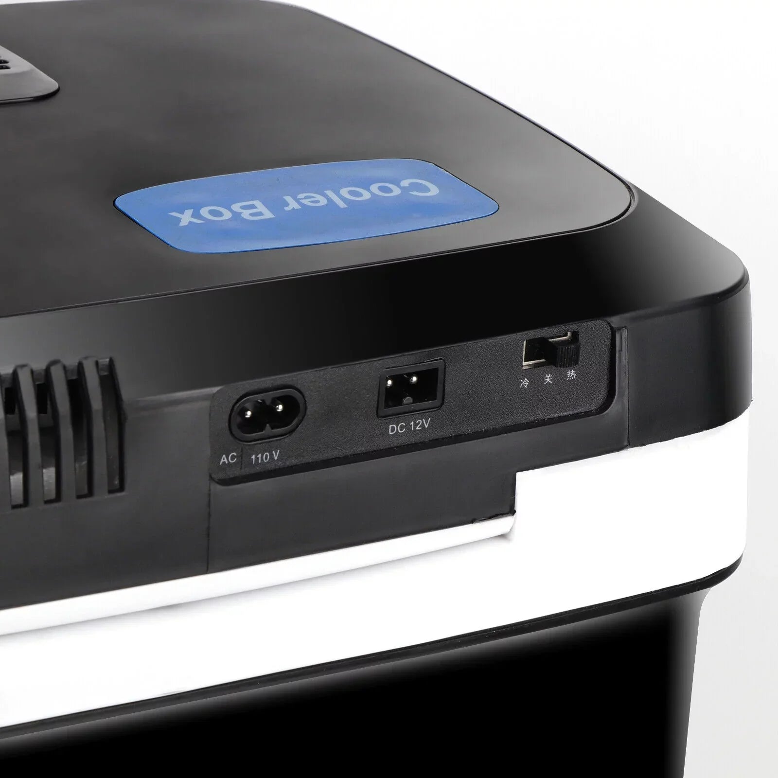 Electric Cooler & Warmer - This mini fridges is both an electric cooler and warm functions . can be low to 68H below ambient temperature .cools your food in 30 minutes . drove for two hours . everything is kept cool after unplugging it and no melted ice mess to deal with.And warmer range is 122H-149H . it can keep your food won't cool down fast when traveling.Its double-walled insulation can keep the breast milk .cosmetics and medicines cold or warm for hours.This is ideal for food heat preservation .drink refrigeration .fruit refreshment and so on.Big Capacity - With 27.5 Quarts capacity . this refrigerator could hold can holds up to 33 cans of soda or 6 two liter bottles . allows storage for your road trip necessities. Moreover .A removable divider creates 2 compartments for easier organizing and storing.Energy-Saving & Low Noise - Specially built with an Energy-efficient thermoelectric cooling system with no compressor . to minimize the vibration effect and noise .Quiet brushless motor and convection cooling with a fan to circulate cold air .no need to worry about it will bother your camping . resting or driving.Plugs In Anywhere- The cooler/warmer combo equipped with two kinds of power supply wires - works with both 110V AC house and 12V DC power with a car outlet plug.Easy Carry - Our Large bail ergonomic handle and compact design make this mini fridges easy to carry for even one-handed carrying.It can be stored almost anywhere within your vehicle . so your items can be accessed easily while on the road.Locking Handle - Keep the lid tightly sealed . no worries of falling over when you drive in the bumpy road.The outside is made of heavy-duty polyester & the inside utilizes a high density insulation.Wide Range of Uses- Whether you're travelling on the road or camping in an RV . camper or minivan . this large capacity storage container to heat & warm or cool & chill food & drink.Ideal companion for a fishing trip . camping weekend or large backyard barbecue in the hot summer sun. Ready to enjoy cross-country road trips and camping weekends!