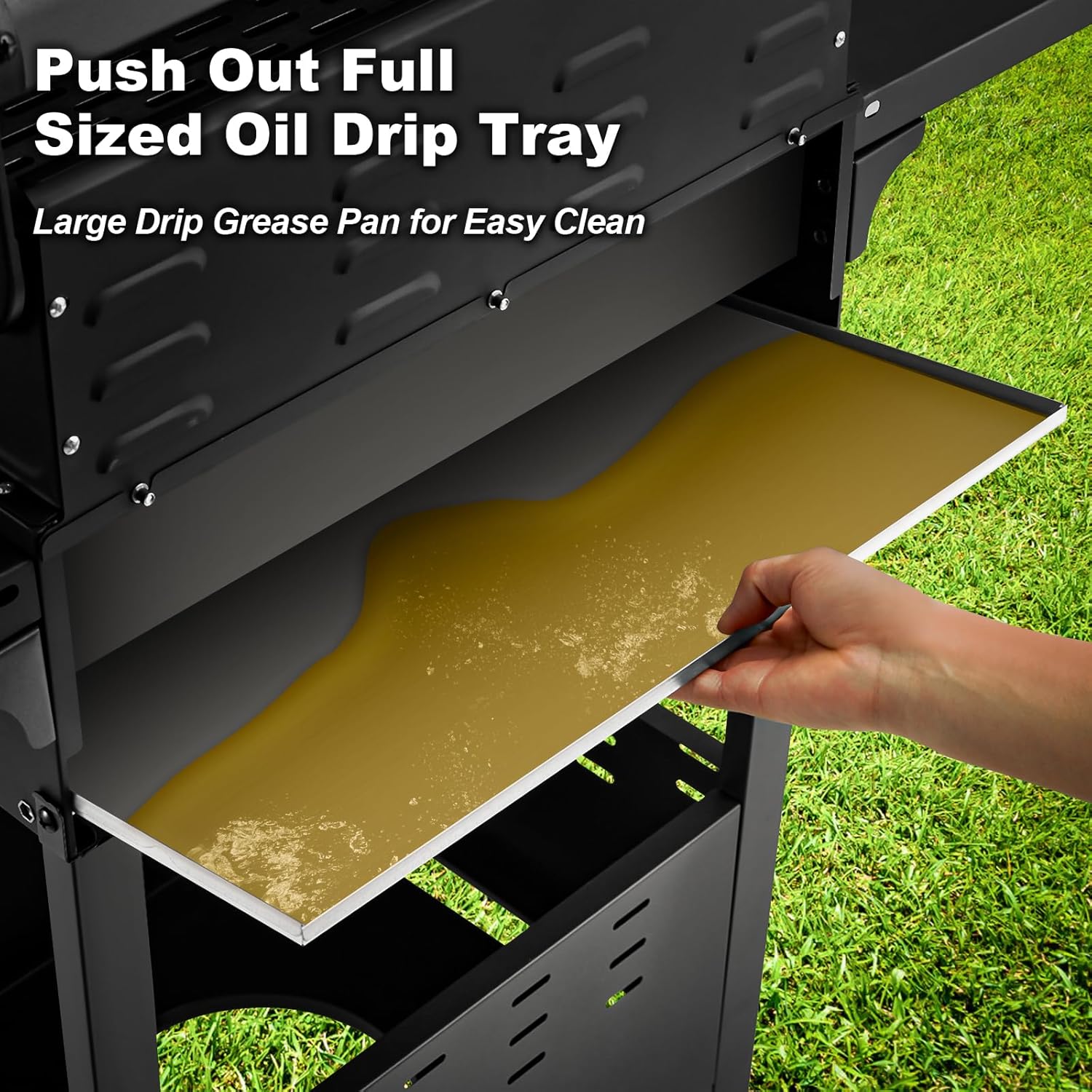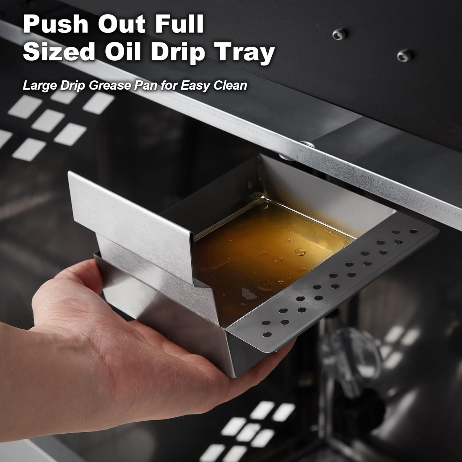 - Easy to Clean - The full-sized pull-out drip tray and grease collection pan are designed to efficiently capture grease and debris during cooking. This helps maintain a clean cooking surface. reduces mess. and makes post-cooking cleanup quick and easy