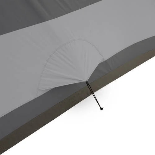 The Dark Rest Tent features an Innovative Dark Rest technology that blocks sunlight to help you stay cooler and sleep longer. Multiple skylights with interior ceiling panels allow you to customize the light . and can be rolled back for stargazing or extra interior illumination. The cabin-style camping gear product features three large windows for great views of the outdoors and comfortably fits two queen air beds or up to six campers in sleeping bags on the floor. Keep yourself organized and connected with the hanging gear loft . large gear organizer and electrical port access. This Dark Rest Tent includes nine tent stakes to give it stability. A ground vent helps ensure adequate air circulation . and there is also a rainfly with factory-sealed seams. This six-person tent also comes with a carrying bag for convenient transportation. Take it with you on your next camping trip . music festival . beach excursion and more.
